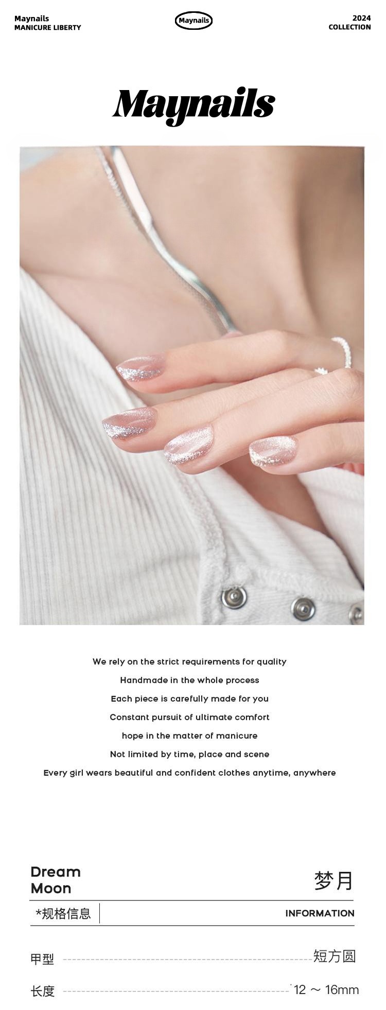 Maynails美奈斯是—个新兴的穿戴甲品牌,主张“美有很多种样子,自己喜欢就好”的时尚理念。倡导“美甲自由,穿戴自由”的个性化与场景式美甲体验。