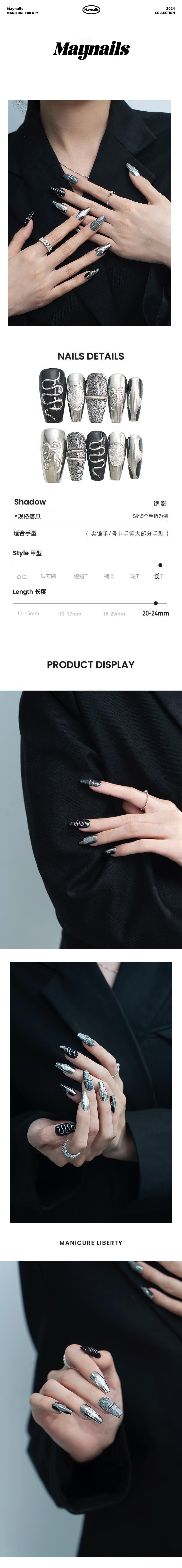 Maynails美奈斯是—个新兴的穿戴甲品牌,主张“美有很多种样子,自己喜欢就好”的时尚理念。倡导“美甲自由,穿戴自由”的个性化与场景式美甲体验。